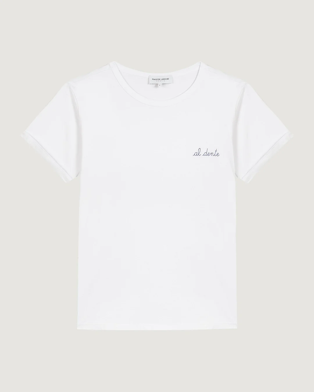 La typographie, brodée et inspirée des blouses de pensionnaires françaises des années 50 devient la signature de la marque. Aujourd’hui, les tissus sont choisis avec soin en privilégiant les matières naturelles et sont ensuite produits principalement au Portugal.