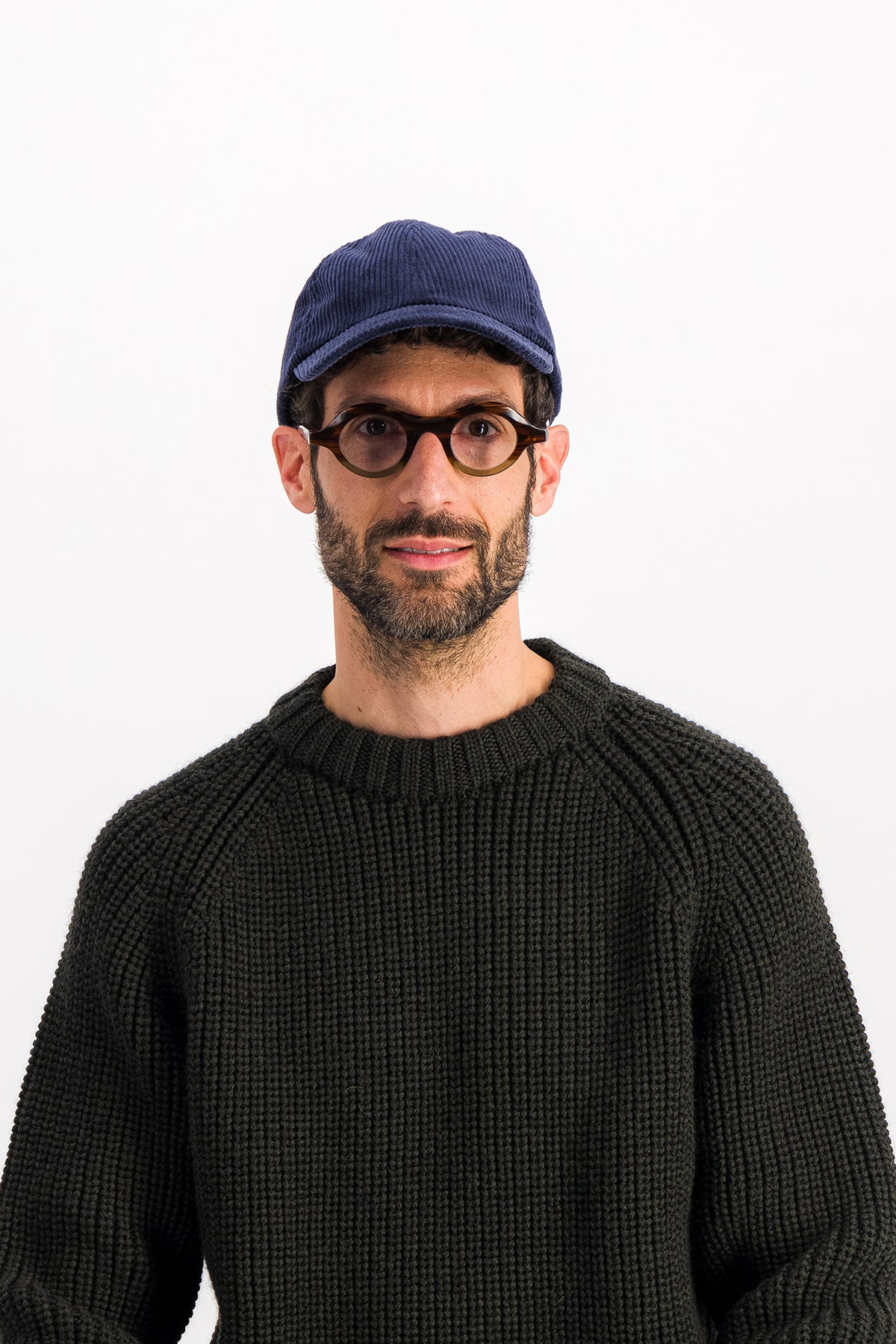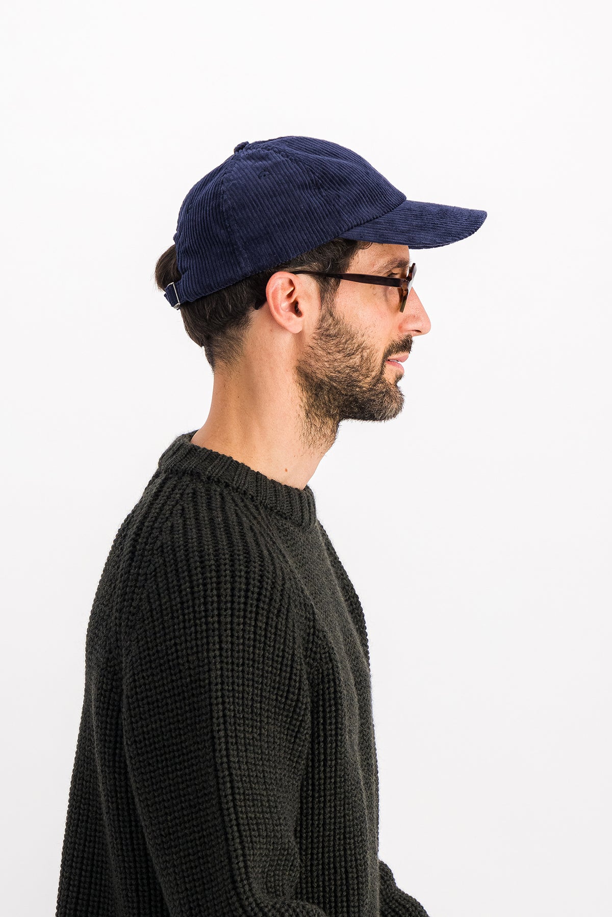 Casquette 6 panneaux ARCHIE en velours épais, avec patte de resserrage en tissu et boucle en métal couleur acier vieilli.