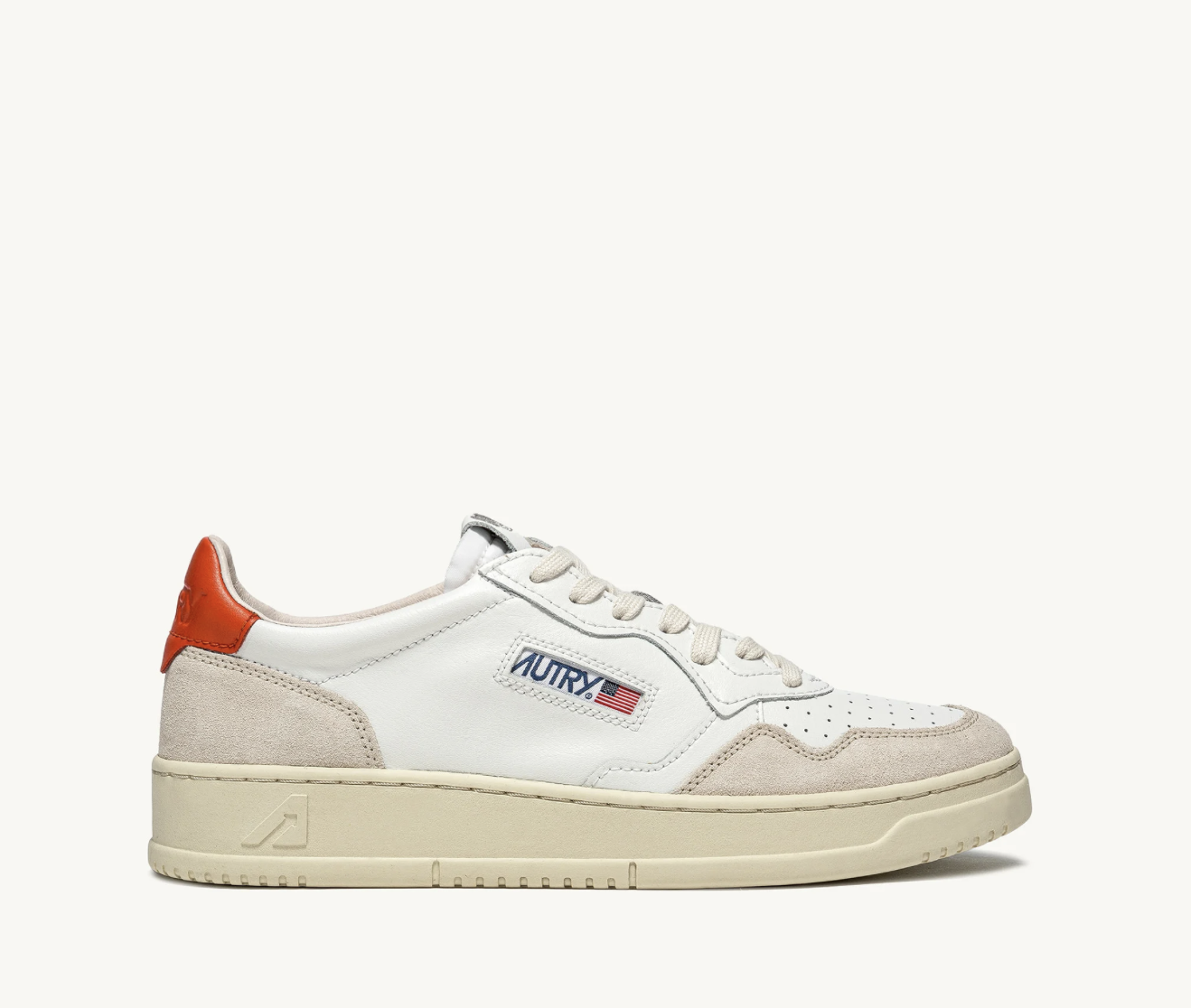 Un style intemporel. Autry Medalist est la chaussure inspirée aux modèles vintage des années Quatre-vingts, réinterprétée en clé contemporaine. Un design indubitable qui devient unique grace au supérieur en cuir blanc et logo iconique imprimé sur le petit talon derrière en orange.