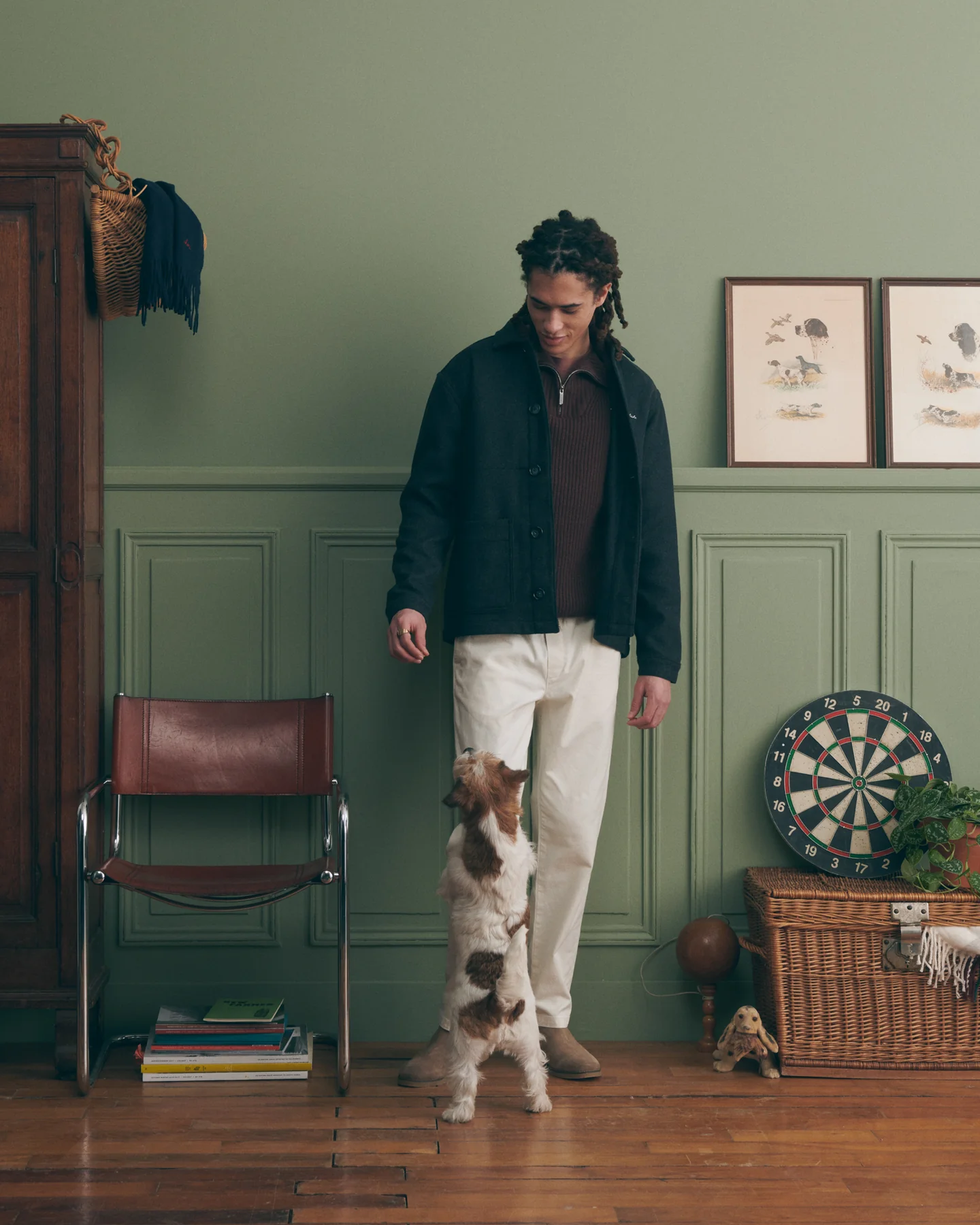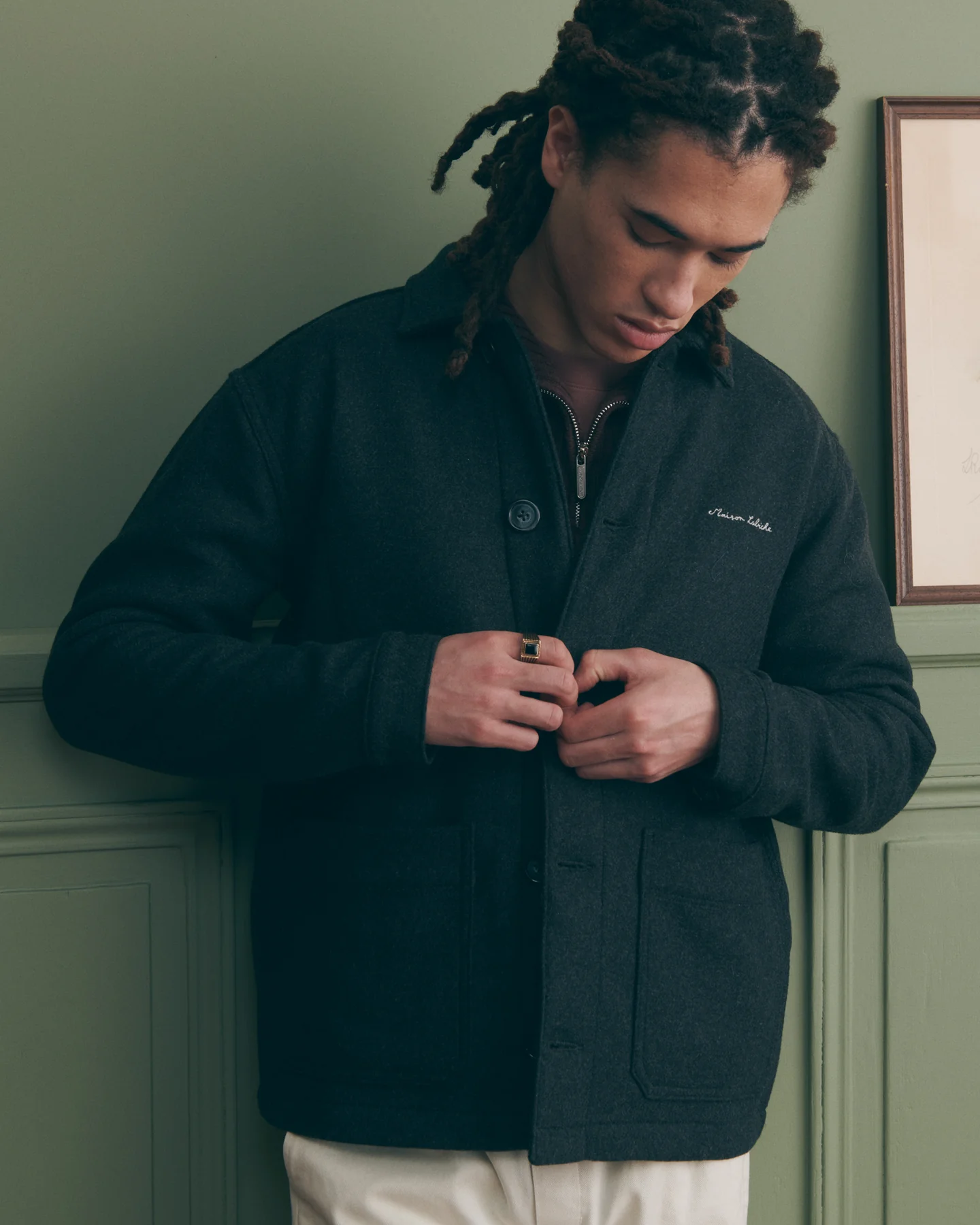 Notre veste iconique Sébasto a une coupe droite, des poches plaquées ainsi qu’une ouverture et des poignets boutonnés. Sa broderie est la nouvelle signature Maison Labiche.
