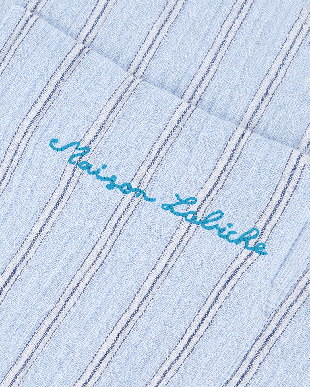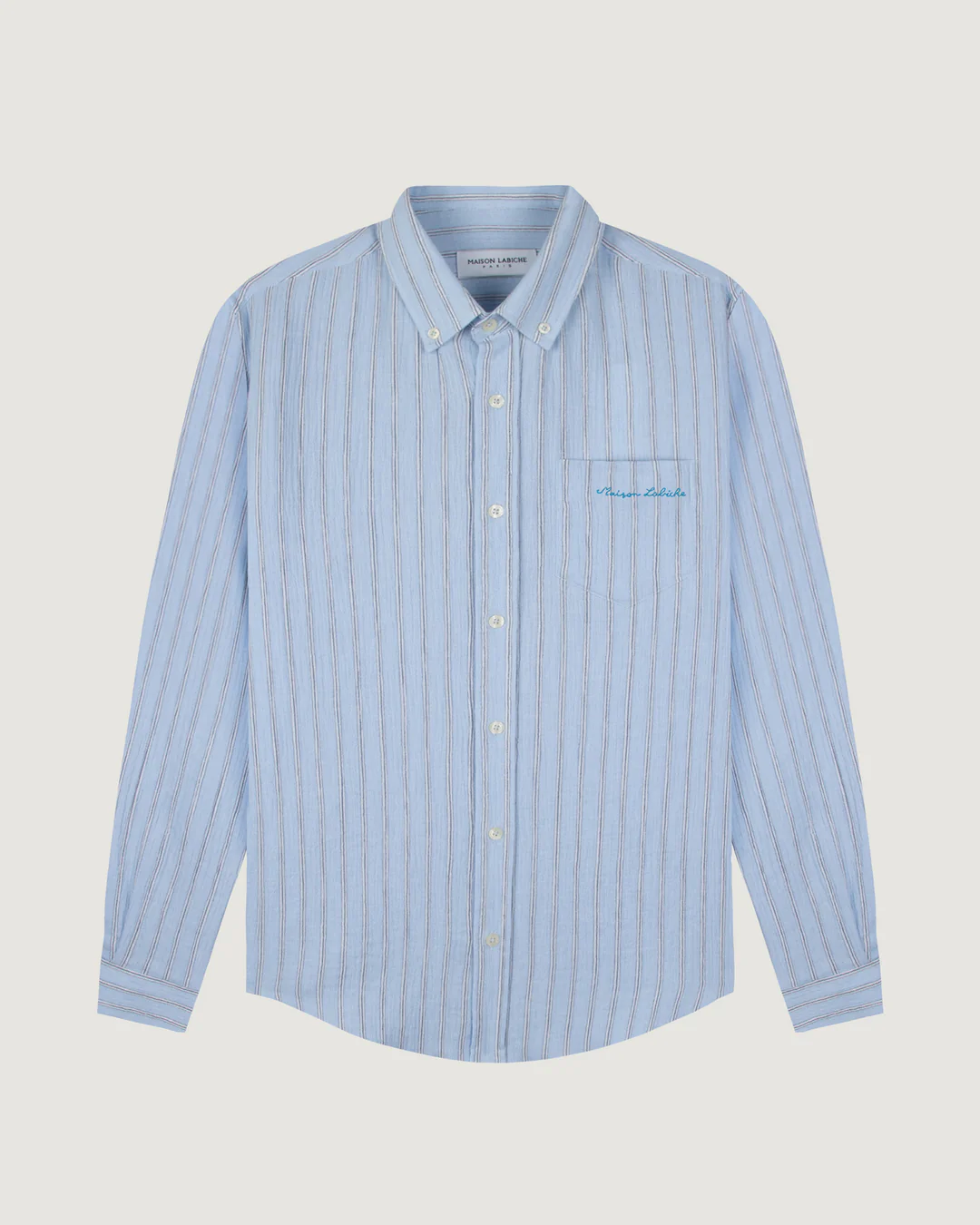 Notre chemise iconique Bonne Graine a une coupe droite, légèrement ajustée avec une poche poitrine sur le cuir et des boutons gravés Maison Labiche. Sa broderie est la nouvelle signature Maison Labiche.