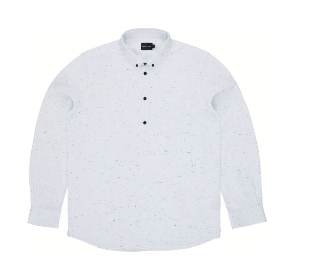 Chemise tunique avec petit col boutonné. Matière en coton moucheté contrasté. Coupe ample. Une poche poitrine.