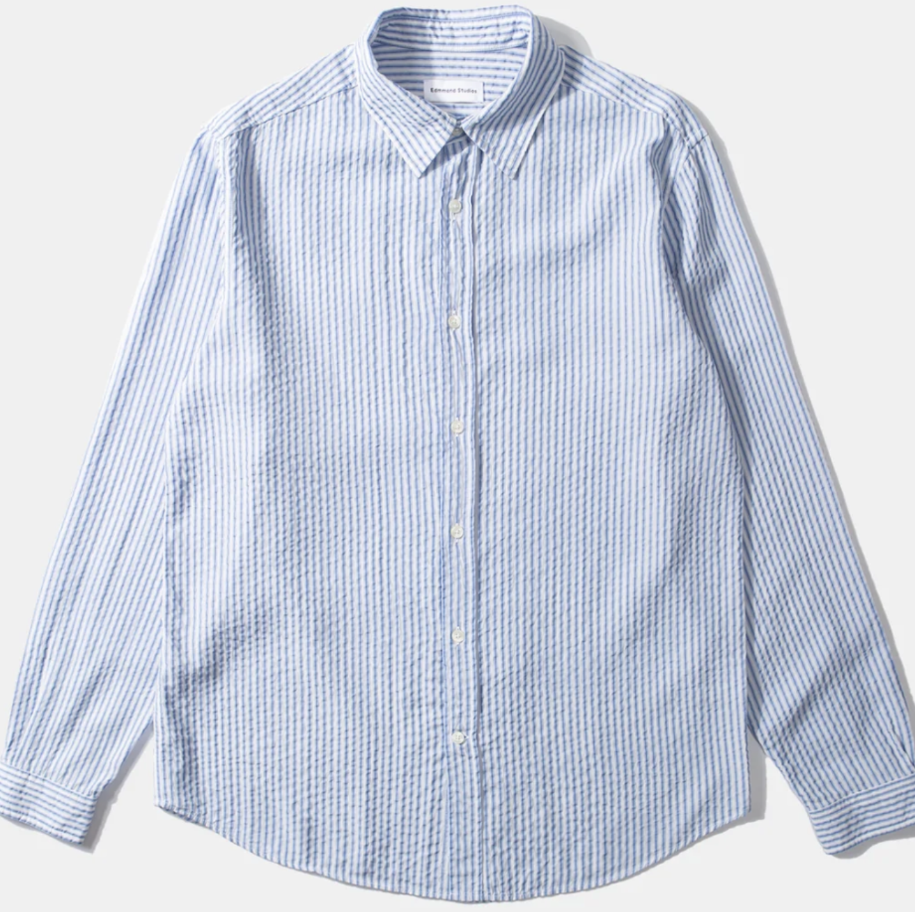 Cette chemise en seersucker est un ajout facile à votre garde-robe d’été. Ce vêtement à rayures bleu marine présente une coupe ample. Patte de boutonnage et poignets ronds.