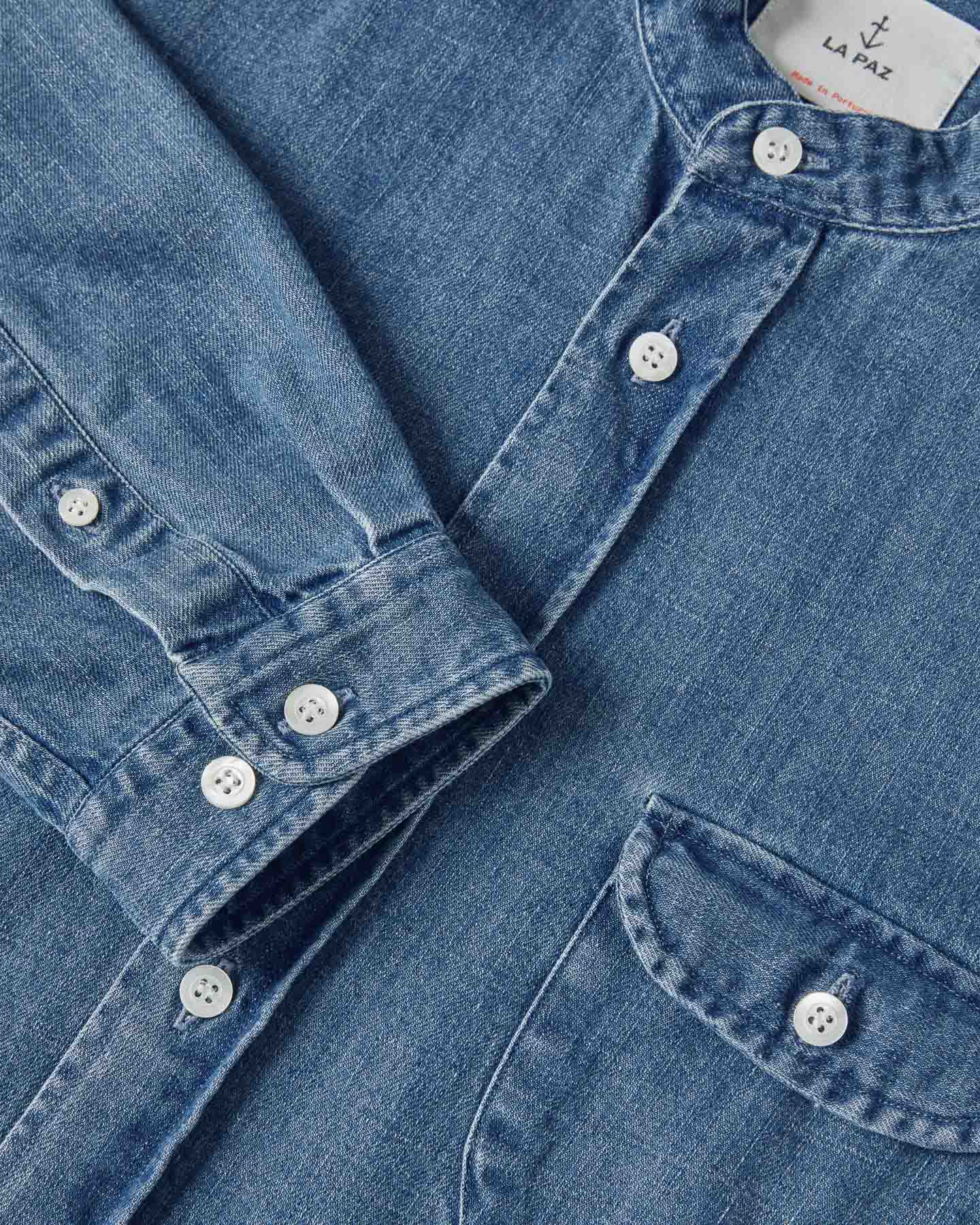 Avec son design épuré, ce modèle est un excellent ajout pour un look estival pointu dans votre rack. cette chemise sans col avec boutons en nacre est dotée de manches longues et d’une poche poitrine.