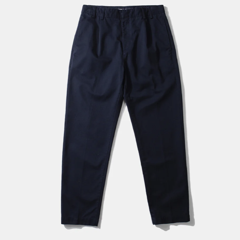 Pantalon chino uni. Ces classiques comportent des plis à l’avant et à l’arrière, une braguette zippée avec fermeture boutonnée, des poches latérales dans les coutures et des poches passepoilées à l’arrière.
