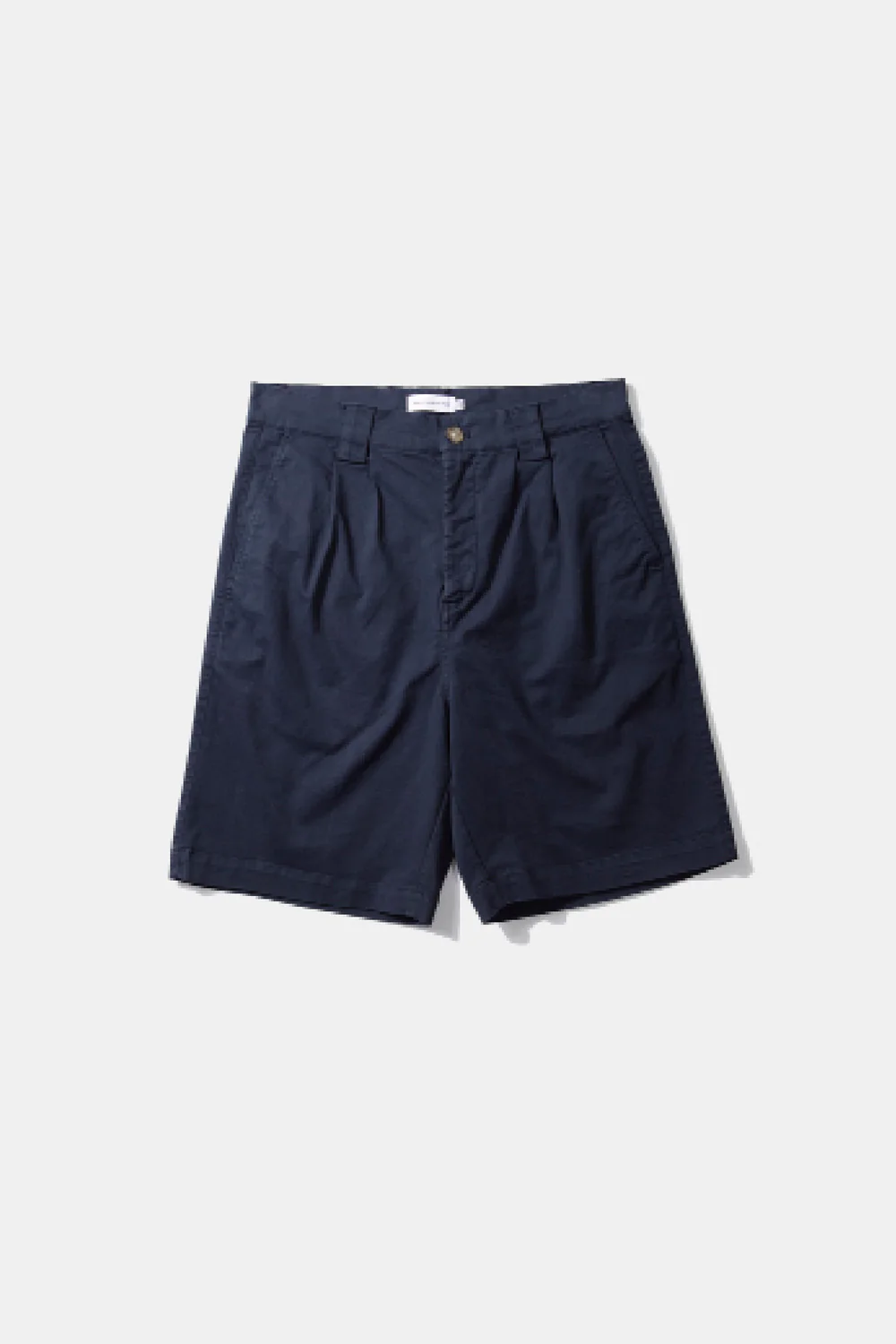 Short style chino navy 100 % coton, avec ses plis classiques pour une touche raffinée. Idéal pour les journées chaudes, il offre une coupe confortable et une option élégante et respirante pour l’été.