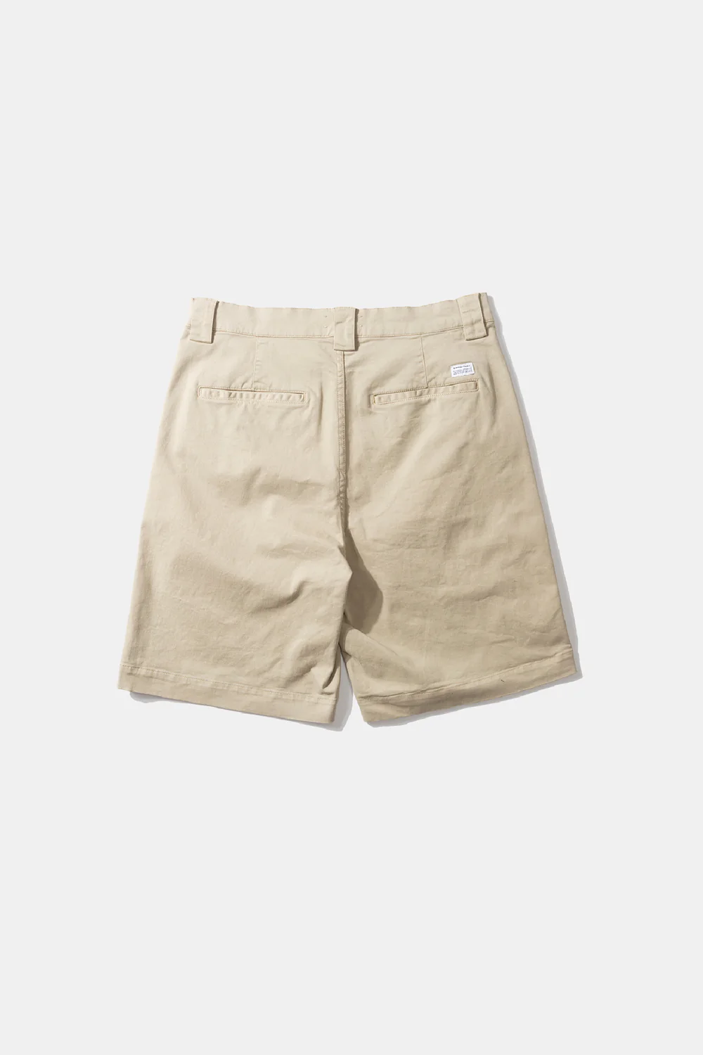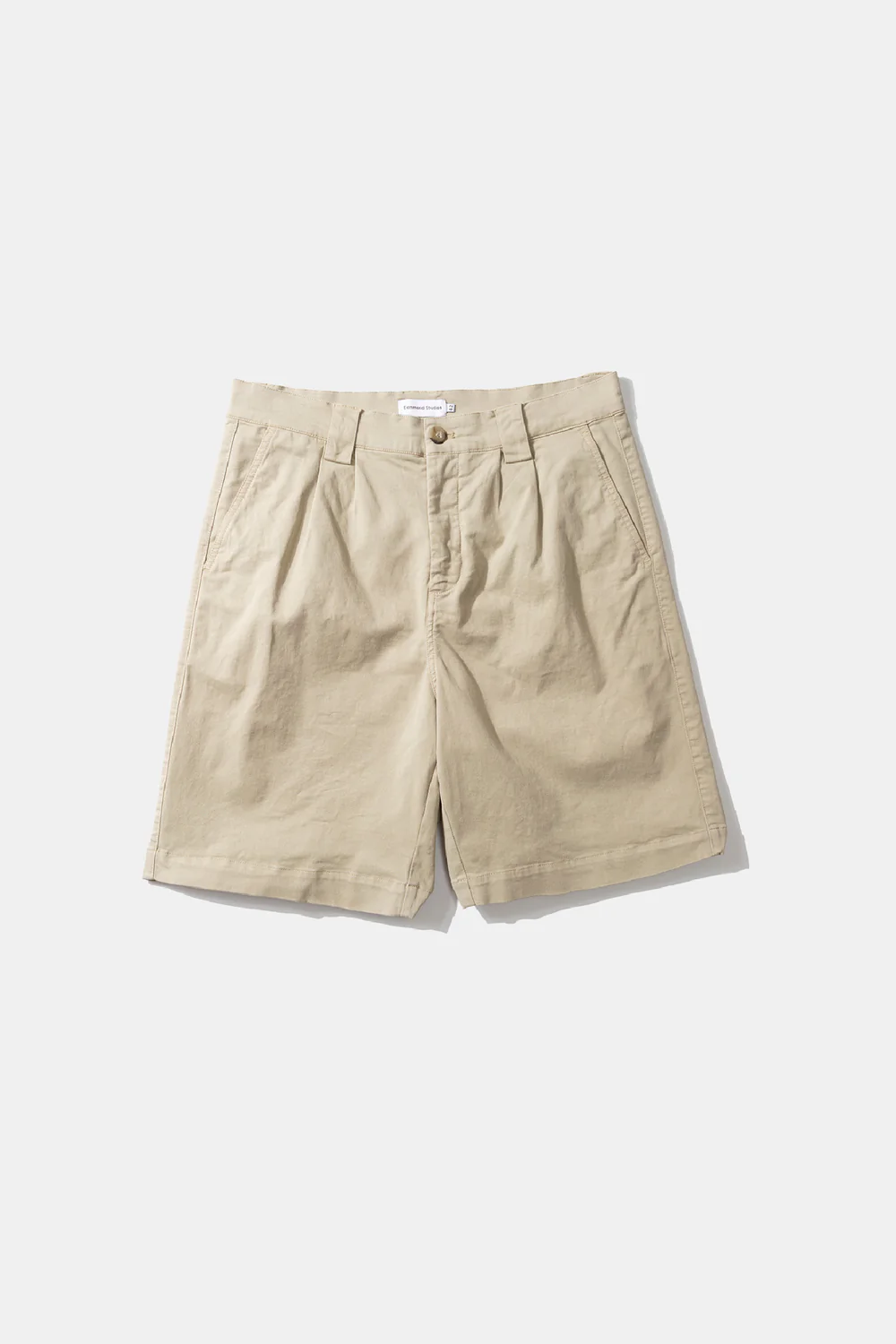 Short style chino taupe 100 % coton, avec ses plis classiques pour une touche raffinée. Idéal pour les journées chaudes, il offre une coupe confortable et une option élégante et respirante pour l’été.