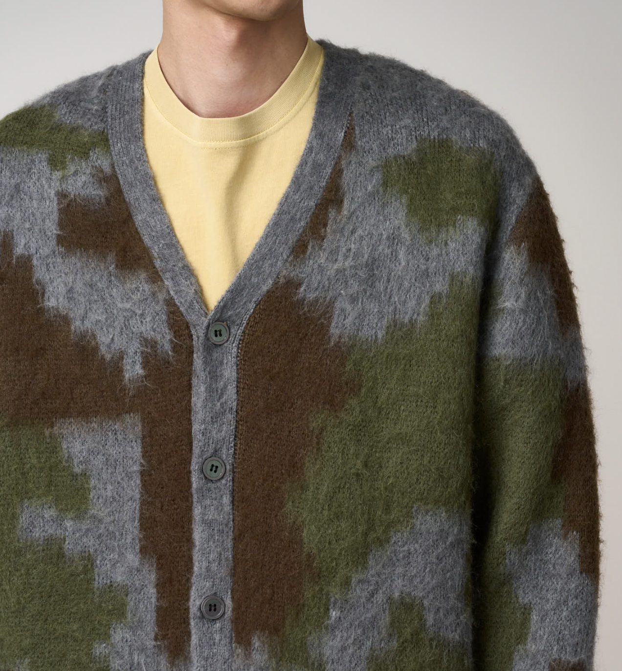 Et maintenant, quelque chose d’un peu différent. Le cardigan en mohair est un tricot en mohair ultra-shaggy à la coupe agréable et décontractée. Ample, c’est un véritable luxe décontracté avec juste ce qu’il faut de style jazz-café.