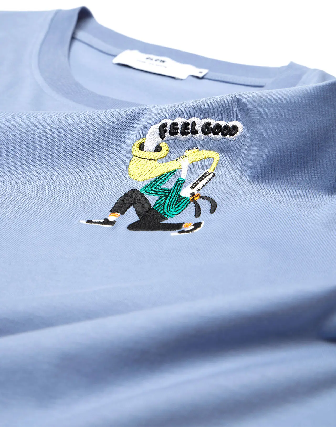 T-shirt col rond bleu indigo avec broderie poitrine.