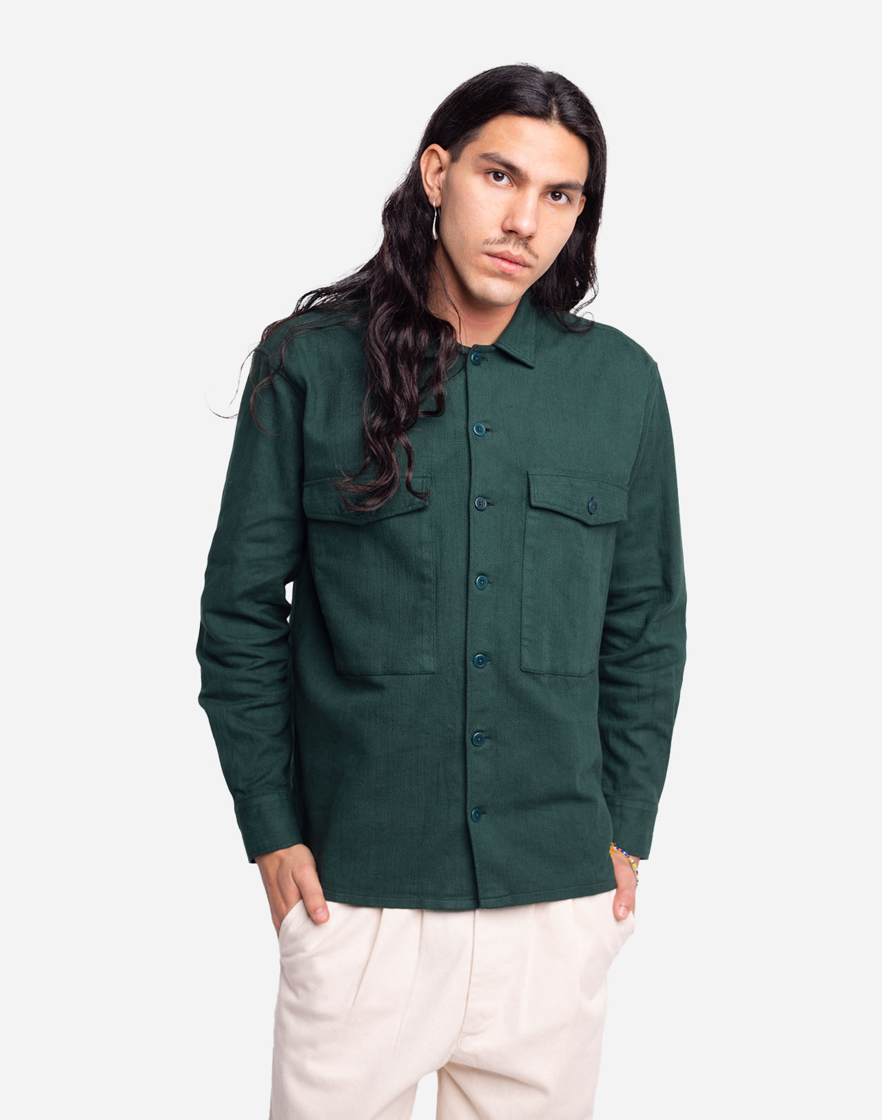 Une chemise bien robuste comme on aime, aux accents workwear, qu’on peut porter comme une veste à la mi-saison ou en chemise quand le thermostat baisse.