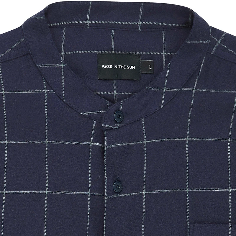 Chemise à col officier en flanelle de coton à carreaux contrastés. Avec une poche poitrine boutonnée.