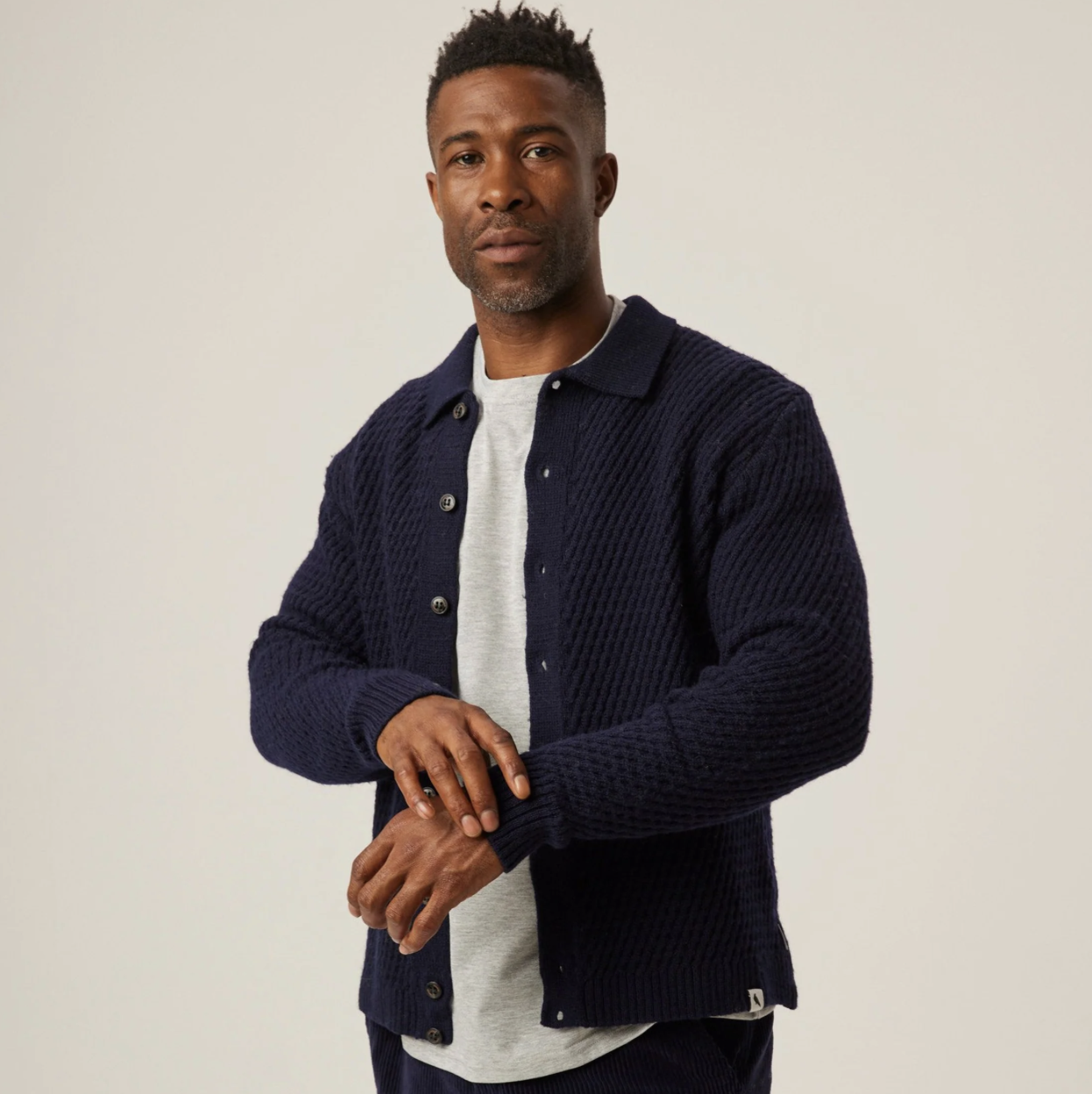 Ce cardigan boutonné est la couche de style parfaite lorsque les jours deviennent plus courts et plus froids. Produit dans deux teintes neutres, le cardigan en laine à col peut être associé à n’importe quelle tenue automnale.